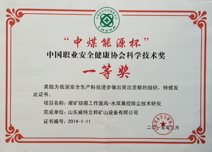 濟寧市首屆創(chuàng)新大賽“煤礦采掘面濕噴除塵系統(tǒng)設備”創(chuàng)新組二等獎
